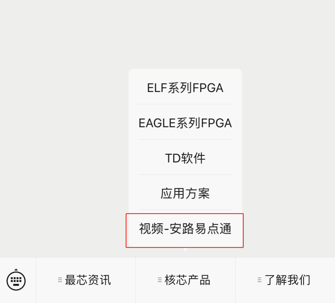 更多安路技术解疑小视频,请点击安路科技官微公众号底部菜单:视频-安路易点通,也可以观看其他产品视频内容哦。