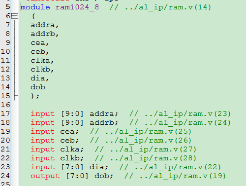 然后编写顶层文件并且在顶层例化PLL和RAMA、RAMB。