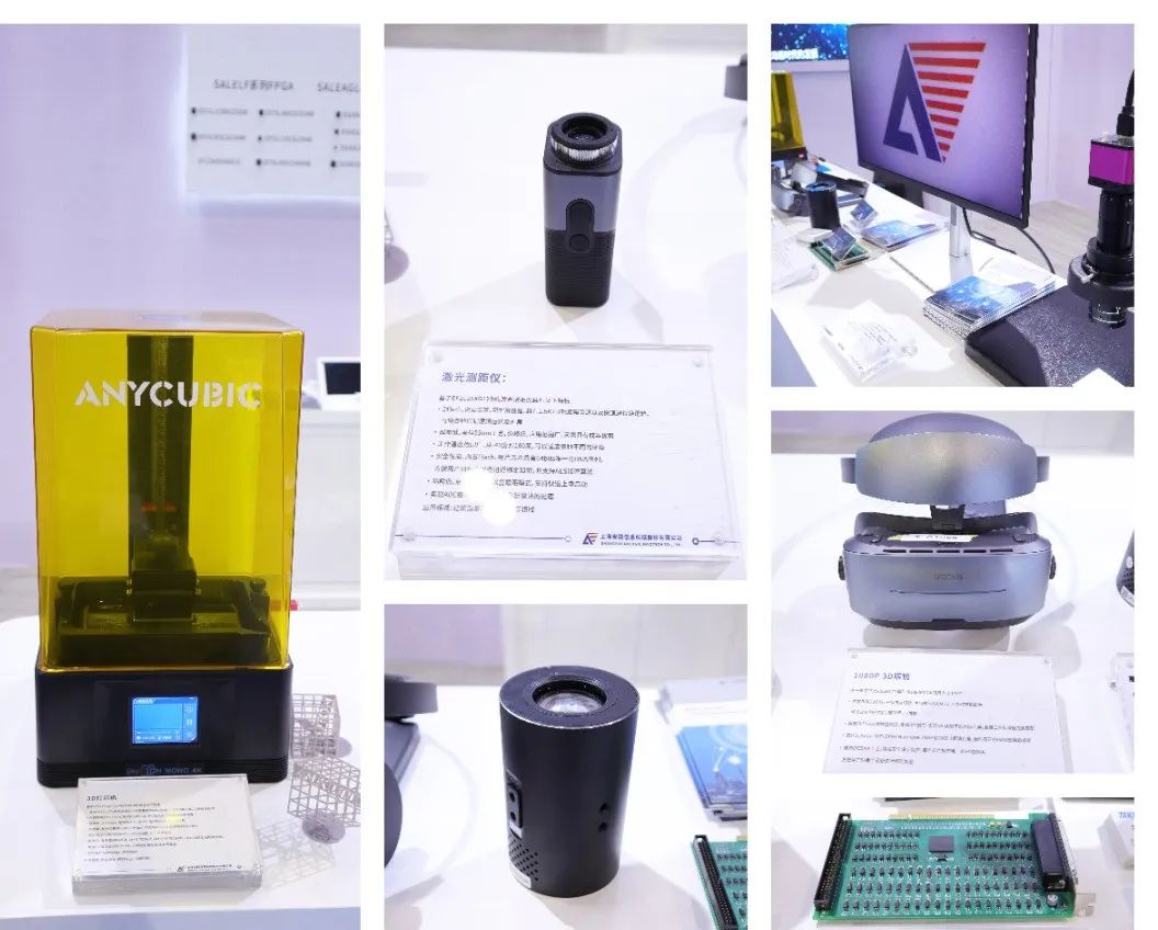 现场展示了多个终端产品,有3D打印机、激光测距仪、高清直播摄像机、3D工业相机、1080P眼镜、运动控制卡等,以丰富有趣的终端产品向现场观众呈现安路FPGA芯片在实际中的精彩应用。
