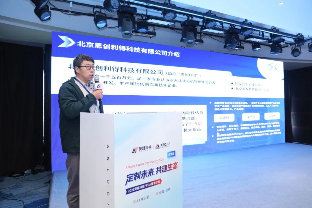 2025年11月12日,安路科技AEC FPGA技术沙龙收官之站在北京圆满落幕。本次沙龙以“定制未来,共建生态”为主题,聚焦国产FPGA在边缘计算、工业控制及汽车电子等前沿领域的技术创新与生态发展,现场吸引了超250名客户代表、行业专家、开发者及生态伙伴,共同见证了一场高价值的技术盛会。